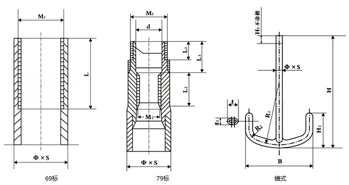 规格 | φ×S | H | H1 | H2 | H3 | B | R1 | R2 | t1 | t | M1 | L |