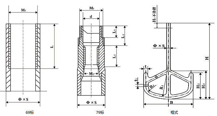 规格 | φ×S | H | H1 | H2 | H3 | B | R1 | R2 | t1 | t | M1 | L |